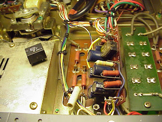 Well, let's see the lower side of the unit. I found several things which needed some care. First, there is a relay which is used to modify tube polarization when it is or not transmitting and it was flooded with oil. Not a good thing!